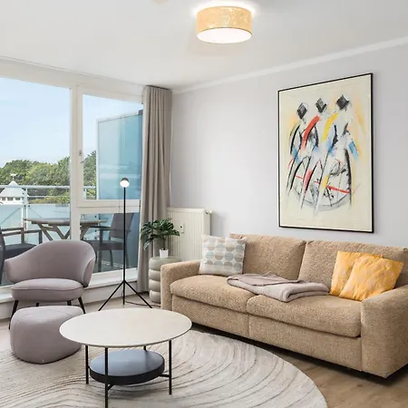 Windfluchter An Der Seebrucke lägenhet erbjuder strandnära boende som har en terrass med utsikt över havet. Det är strandnära beläget ca 5 minuters promenad från Historischer Seenot-Rettungsschuppen der DGzRS och ca 10 minuters gångavstånd från Tauchgondel Zingst.